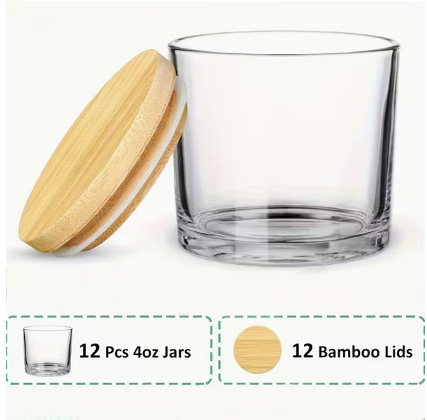 OKAY 12st 4oz Glazen Kaarsenpotten met Bamboe Deksel - Perfect voor DIY Kaarsen Maken & Knutselen voor Alle Seizoenen