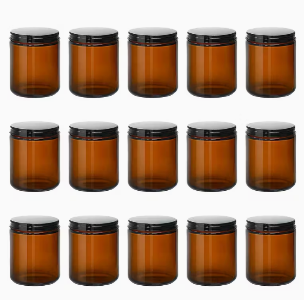 8oz Kaarsenpotten met Deksel, 15-Pack Amber Glazen Potten met Zwarte Metalen Deksels, Ronde Kaarshouders, Lege Pot voor het Maken van Kaarsen, Poeder, Vloeistof, Crème